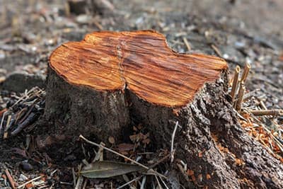 大きく成長しすぎた庭木を、チェーンソーなどで根本から切り倒します。